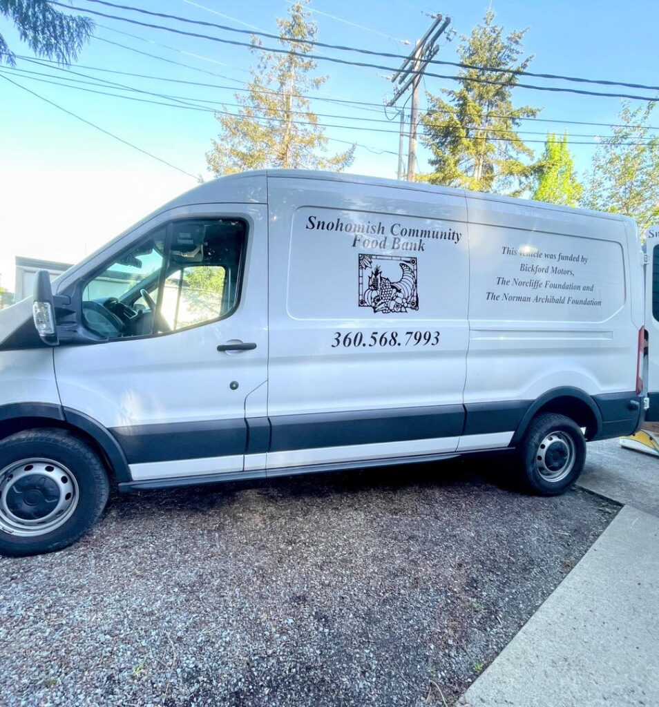 We drive shoppers home with their groceries during Tuesday’s services. Shoppers must live in the City of Snohomish and find a way to get to the food bank during service hours.