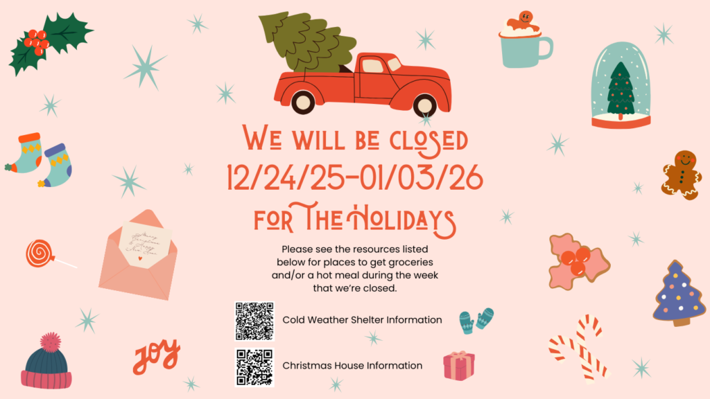 Clients are welcome to visit the Food Bank once each week. Please do not arrive more than 10 minutes early. Folks who arrive early do not receive priority in terms of wait time or quality of food, we restock our food throughout service and are committed to providing quality food to all clients regardless of what time during service they shop.